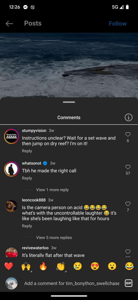 The video was posted by @deewhypointrockoff (sent in by @cooper.brown4) and spread like wildfire, even being reposted by king of slow mo Tim Bonython.
